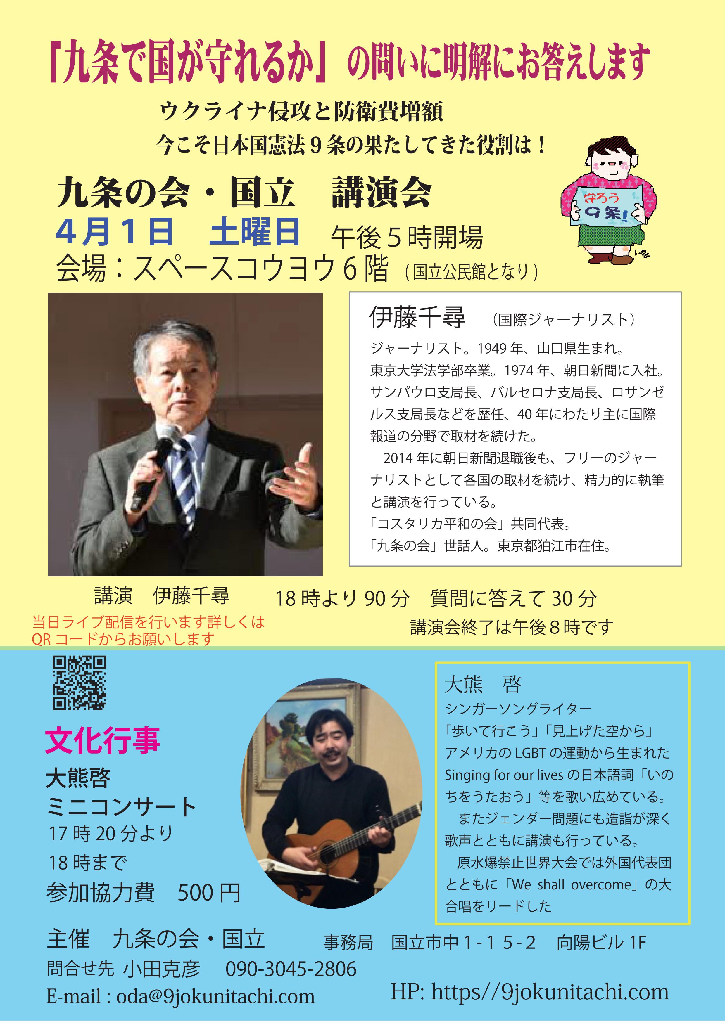 | 2023年4月1日 17時よりの伊藤千尋講演会 | ||||||